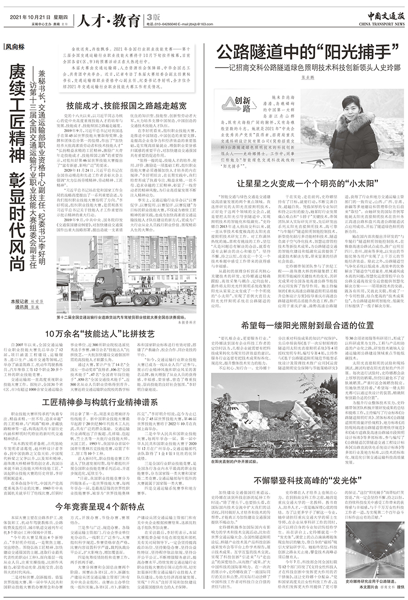 《中國交通報(bào)》刊文報(bào)道“中央企業(yè)優(yōu)秀共產(chǎn)黨員”史玲娜先進(jìn)事跡