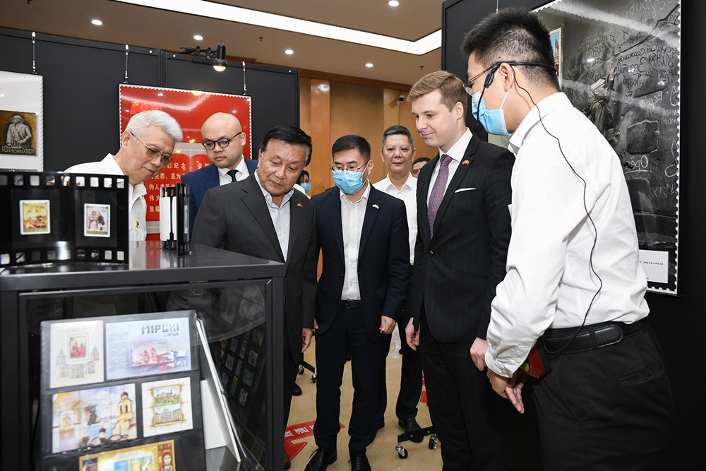 王福敏在致辭中表示,郵票展中涉及到的歷史事件、歷史人物等相關(guān)史實(shí),能夠啟迪智慧,達(dá)到學(xué)史明理、學(xué)史增信的效果,進(jìn)而以國際視角生動、客觀、深入地了解中國共產(chǎn)黨百年奮斗歷程。同時,本次活動也是“一帶一路”文化交流的展示平臺,希望每一位參觀者都能從中開拓眼界,汲取智慧,了解文化,增強(qiáng)自信,更好地為新時代做出新貢獻(xiàn)。