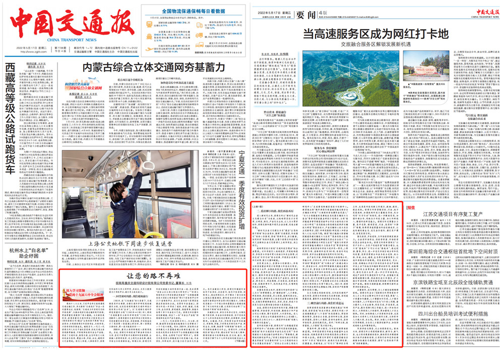 《中國交通報》頭版刊發(fā)《讓您的路不再難》