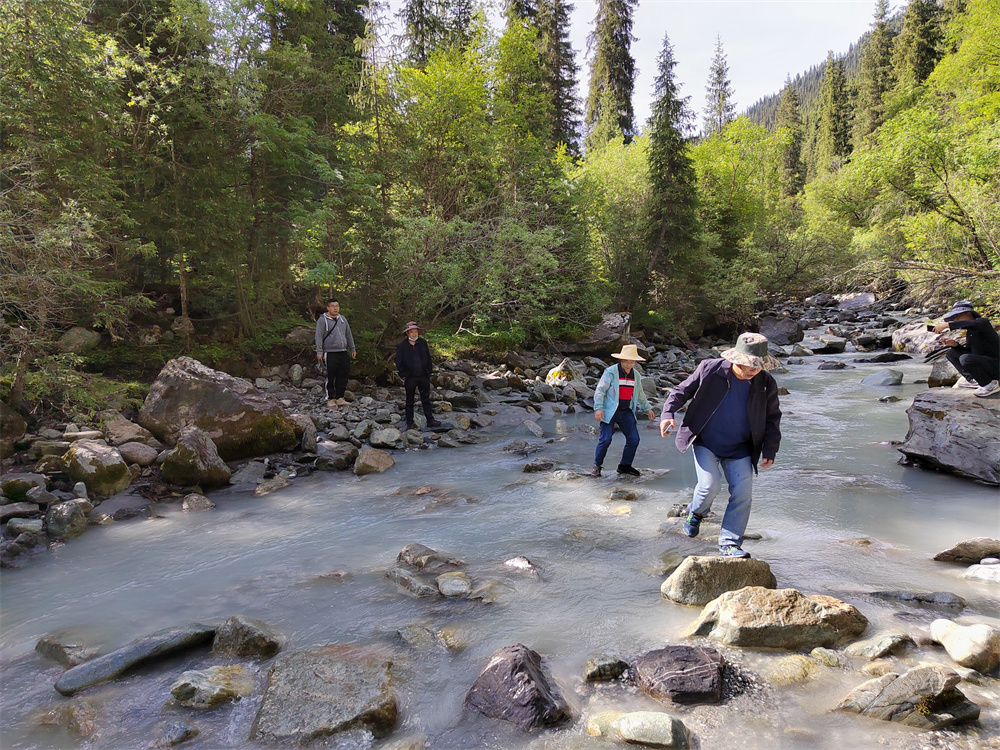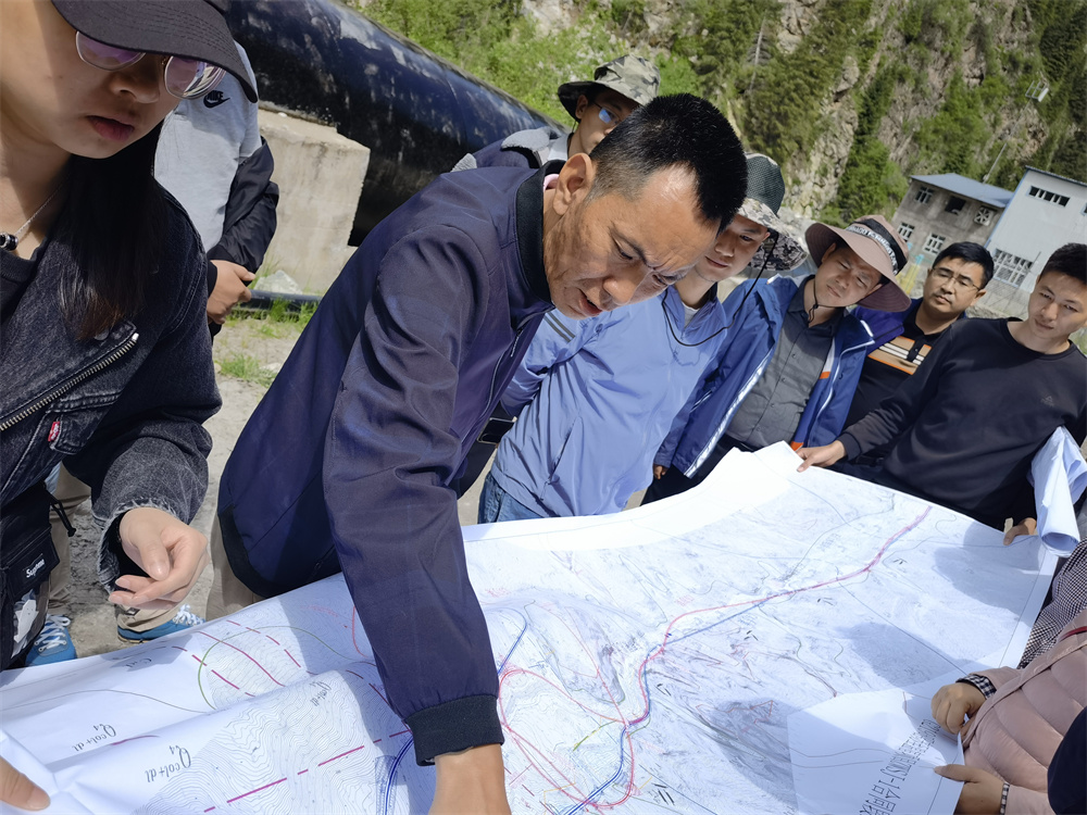 緊接著,項目組一行按規(guī)定隔離14天,為了不耽誤工作,隔離期間,項目組人員臨時搭了一個辦公室,抓緊時間開展前期工作。主動與地勘單位接頭,就勘察的數(shù)據(jù)進行了認(rèn)真討論,并根據(jù)業(yè)主要求做好方案調(diào)整。隔離期結(jié)束后,項目組立即進入了踏勘工作,攀崖涉水,走泥路,鉆樹叢,雖然是萬物復(fù)蘇的五月,遠(yuǎn)處卻是白雪皚皚的天山。雪山之下,寒風(fēng)刺骨。時而大雨傾盆雷聲陣陣,時而驕陽似火炙熱灼灼,讓人深切體會到了那句老話——“早穿棉襖午穿紗,圍著火爐吃西瓜”。
