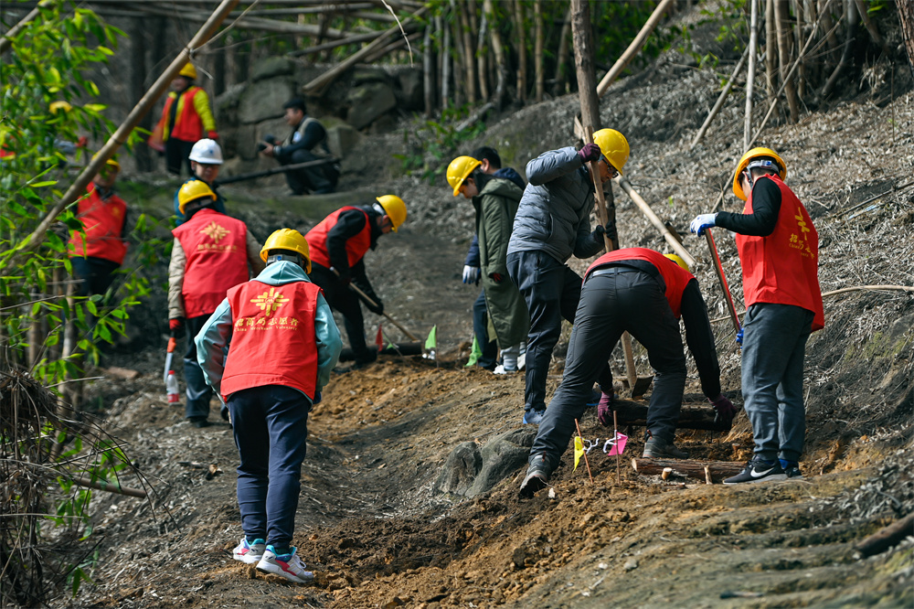 為了保護(hù)當(dāng)?shù)貧埓娴闹参锬茉诖禾彀残纳L,防止大型機(jī)械作業(yè)時對山林的破壞和態(tài)環(huán)境的干擾,同時兼顧當(dāng)?shù)鼐用裆铰吠ㄐ行枨?,招商交科志愿者靠雙手修繕山林步道,用人力守護(hù)綠色山林。