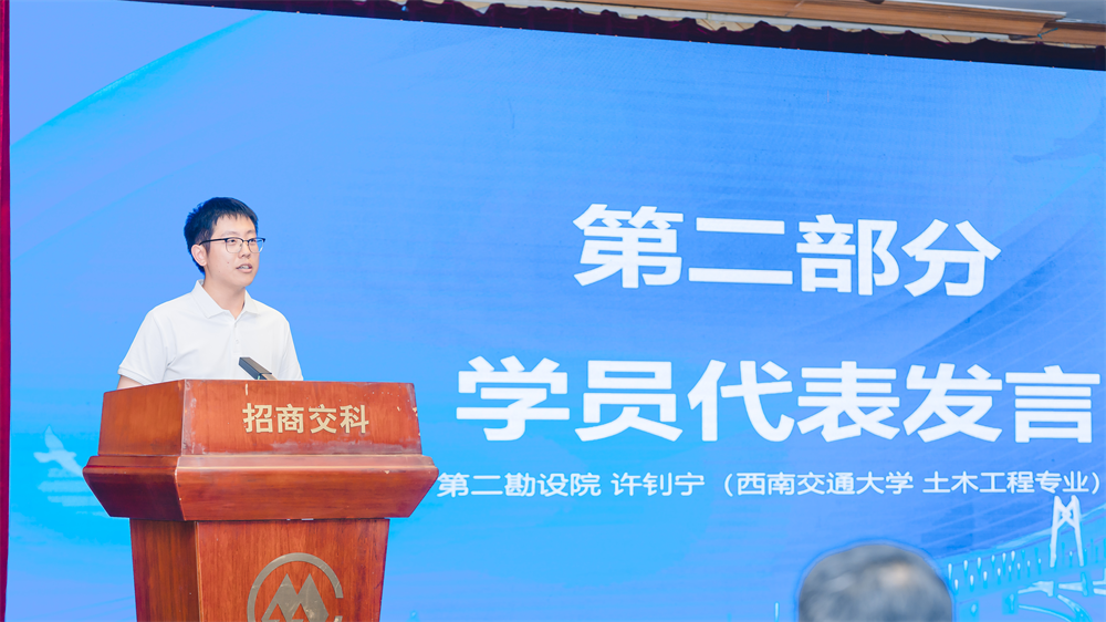 來自第二勘設(shè)院和隧道研究院的許釗寧、梁婳婳作為學(xué)員代表發(fā)言,紛紛表示要以奮斗者的姿態(tài),迅速適應(yīng)新環(huán)境、轉(zhuǎn)換新角色、勝任新崗位,讓自己在招商交科的廣闊舞臺(tái)上貢獻(xiàn)青春力量、綻放青春光彩,努力成長為招商交科高質(zhì)量發(fā)展所需的創(chuàng)新型科研、設(shè)計(jì)人才。