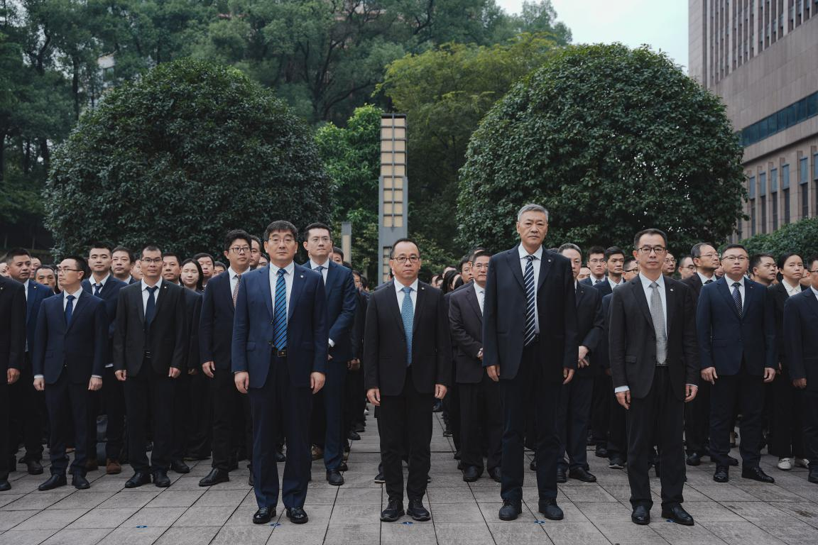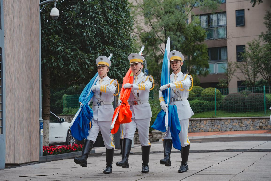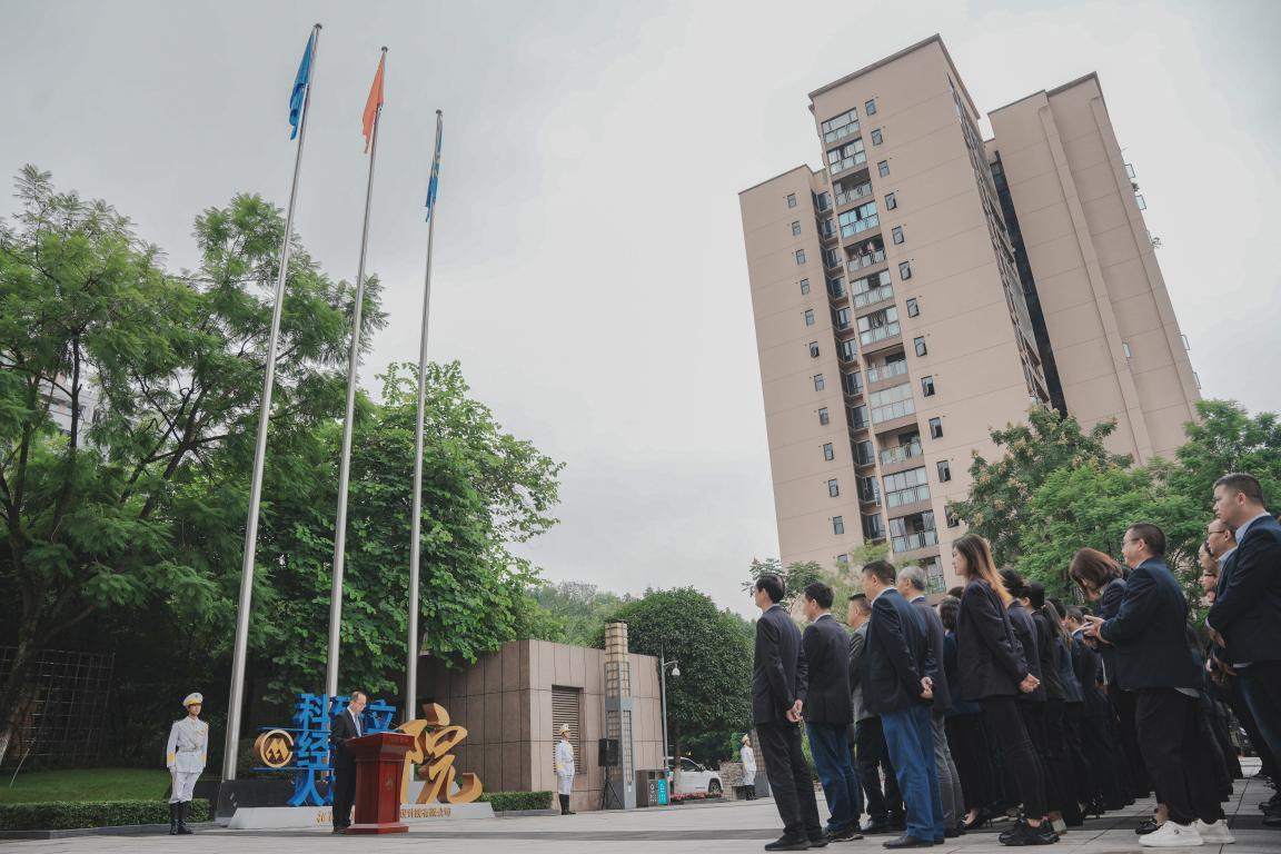 上午9時(shí)零5分,招商交科在交科院廣場(chǎng)舉行了升旗儀式。招商交科在家領(lǐng)導(dǎo)班子,各部門及單位員工代表,部分在渝招商系單位員工代表300余人參加儀式。