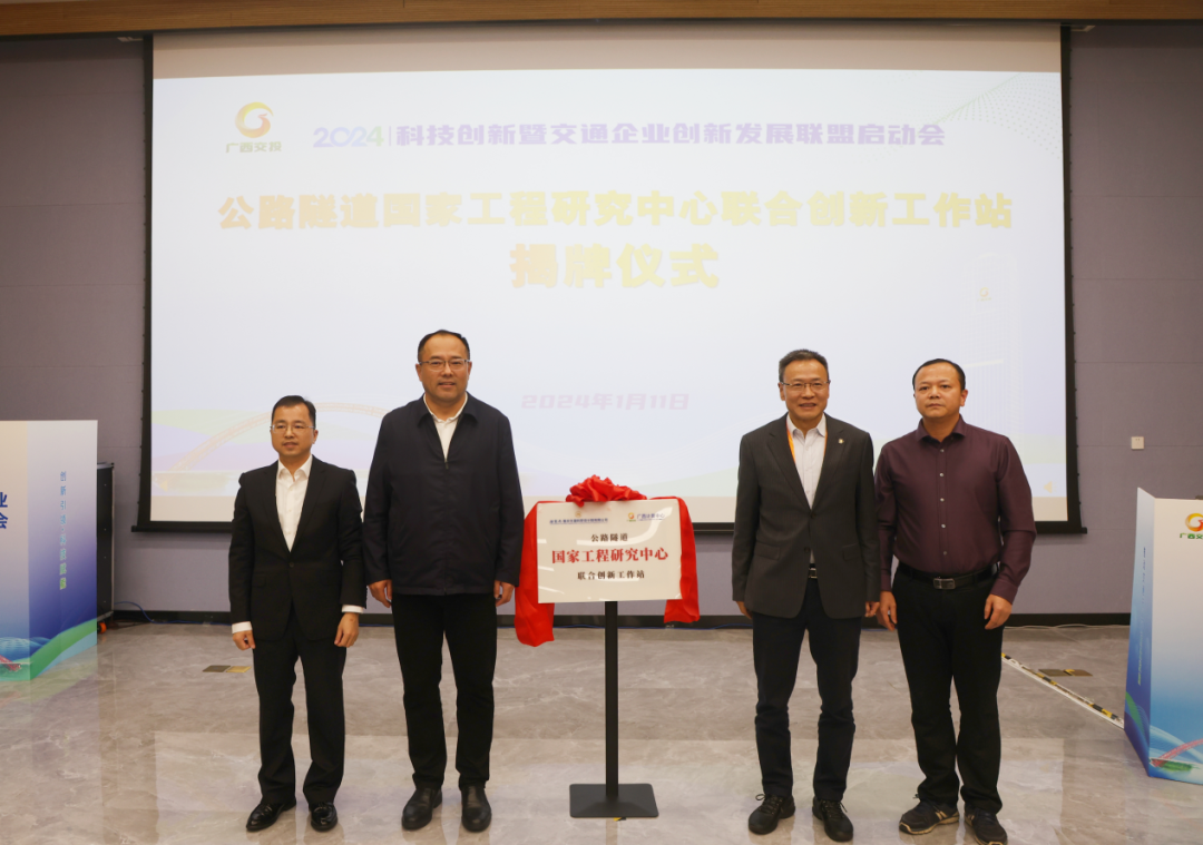 隨后,楊國(guó)峰出席了《交通數(shù)字化建設(shè)發(fā)展》分論壇暨公路隧道國(guó)家工程研究中心聯(lián)合創(chuàng)新工作站揭牌儀式。公路隧道國(guó)家工程研究中心聯(lián)合創(chuàng)新工作站是由招商交科與廣西計(jì)算中心有限責(zé)任公司(以下簡(jiǎn)稱“廣西計(jì)算中心”)共同建立,旨在智慧交通、智慧城市、野外科學(xué)觀測(cè)站數(shù)字化建設(shè)等重點(diǎn)研究領(lǐng)域增強(qiáng)科技創(chuàng)新研發(fā)合作。廣西交投副總經(jīng)理廉向東,廣西計(jì)算中心黨委書記、董事長(zhǎng)黃永剛,招商交科隧道研究院副院長(zhǎng)、公路隧道國(guó)家工程研究中心副主任胡學(xué)兵出席并共同揭牌。