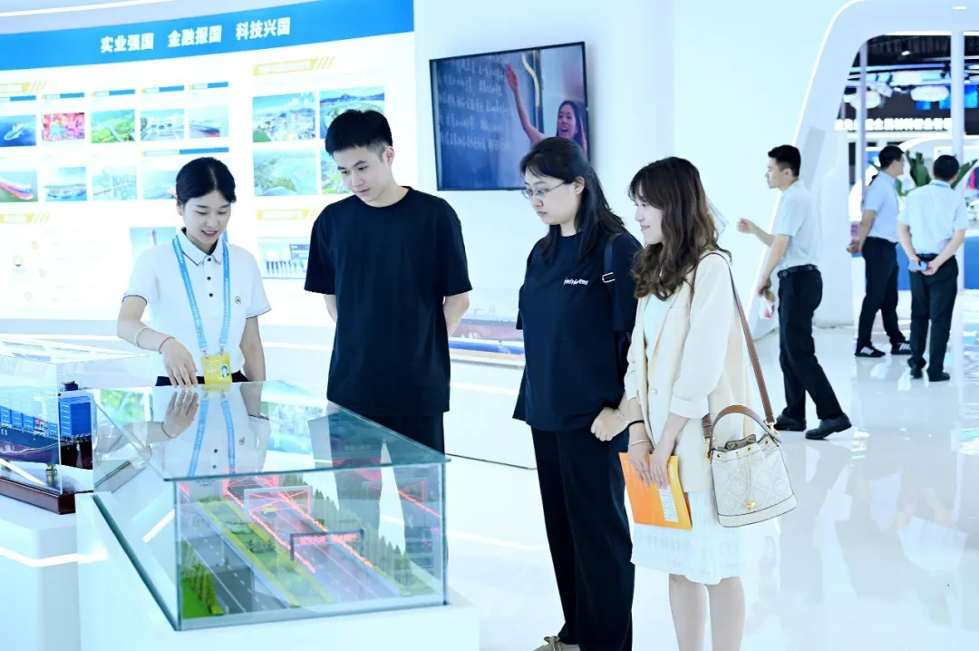 展廳介紹了集團交通物流、綜合金融、城市與園區(qū)綜合開發(fā)、戰(zhàn)略性新興產(chǎn)業(yè)等業(yè)務(wù)情況,積極展示服務(wù)成渝地區(qū)雙城經(jīng)濟圈、西部陸海新通道建設(shè)成效。高端游輪、地標(biāo)性大橋、智慧隧道等模型,吸引了眾多參觀者駐足。