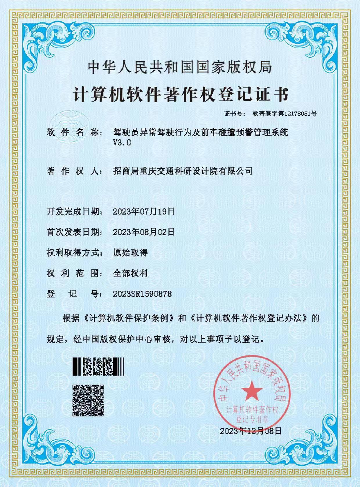 黨的二十大報告提出“推動公共安全治理模式向事前預防轉型”,招商交科CMCT智能交通安全團隊以“減量控大”為主線,依托多個國家級、省部級重大研發(fā)項目,聚焦高速公路重點車輛安全監(jiān)管方向,歷時6年時間,全面攻克重點車輛及其危險駕駛行為快速、精準識別與安全預警技術,獲授權發(fā)明專利2項,編制了《高速公路危險駕駛行為監(jiān)測、預警及車輛控制技術指南》(西南交通大學出版社,2024年)。團隊自主研發(fā)的“高速公路重點車輛智能識別與風險預警系統(tǒng)”,具備對“兩客一?!避囕v、大件運輸車輛等進行行駛路徑和違規(guī)駕駛行為識別等功能,對其通過特長隧道、特大橋梁、長下坡等路段進行全程跟蹤,并可關聯(lián)路側可變情報板、廣播等設施及時發(fā)出警告信息。