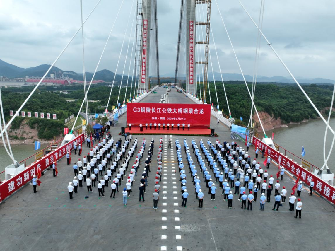 2024年8月27日,隨著大橋兩側節(jié)段鋼梁準確就位,位于安徽省銅陵市的G3銅陵長江公鐵大橋正式合龍,招商交科下屬萬橋公司董事長、黨委書記李闖受邀參加合龍儀式。