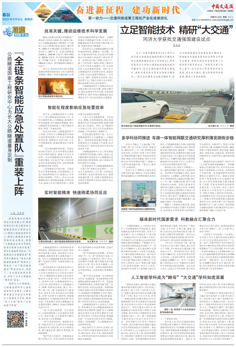 【編者按】2022年9月8日,《中國(guó)交通報(bào)》在第6版以《公路隧道國(guó)家工程研究中心為長(zhǎng)大公路隧道量身定制 “全鏈條職能應(yīng)急處置隊(duì)”重裝上陣》為題,刊發(fā)了招商交科有關(guān)報(bào)道。報(bào)道聚焦長(zhǎng)大公路隧道(指洞身距離長(zhǎng),洞內(nèi)斷面大,運(yùn)行車道多的公路交通隧道)的科技需求,介紹招商交科融合新一代智能信息技術(shù),強(qiáng)化長(zhǎng)大公路隧道突發(fā)事故應(yīng)急處置體系建設(shè),提升我國(guó)基礎(chǔ)設(shè)施運(yùn)維安全整體科技水平,服務(wù)交通強(qiáng)國(guó)戰(zhàn)略的創(chuàng)新成果?,F(xiàn)將全文轉(zhuǎn)載如下: