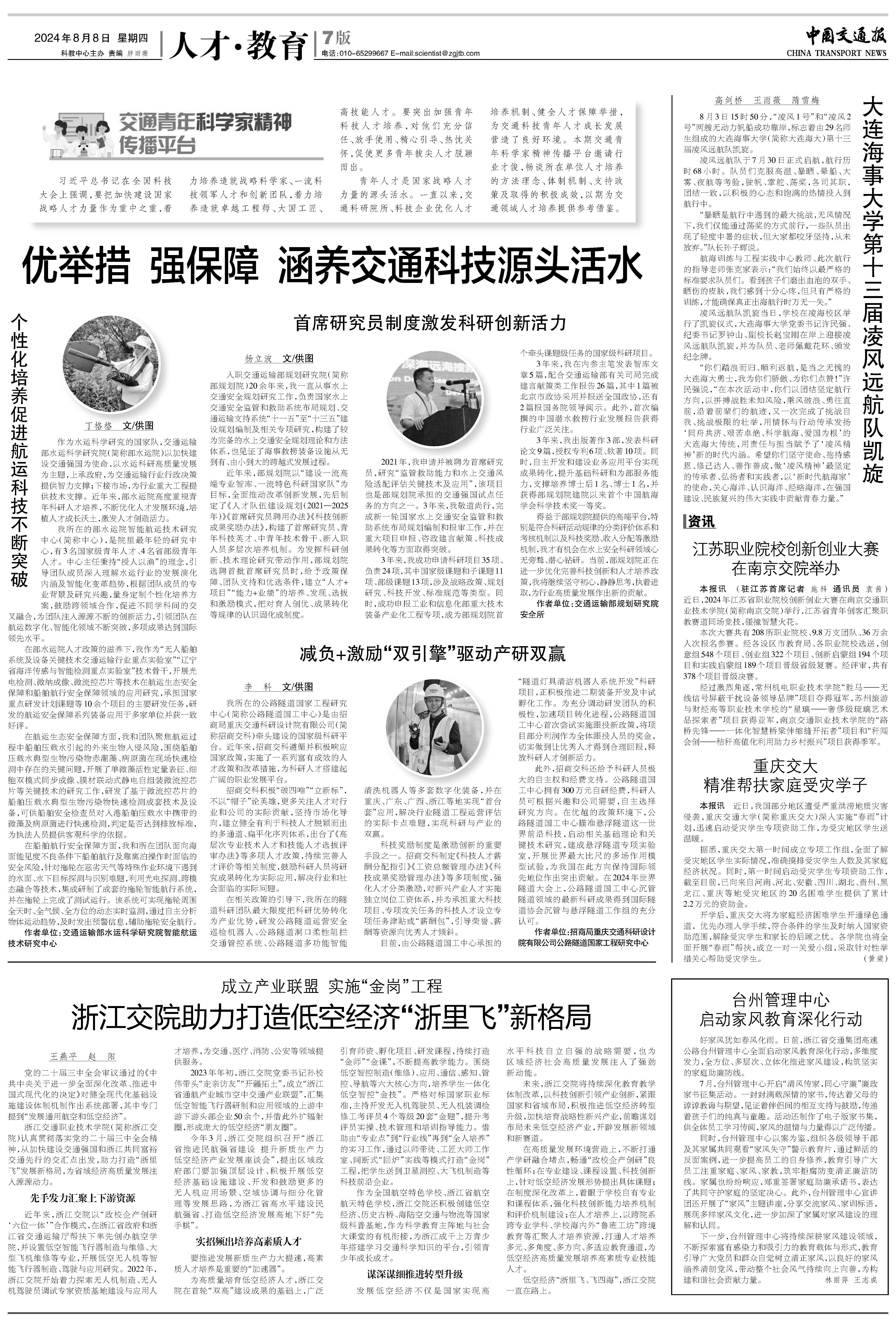 8月8日,《中國交通報(bào)》在第七版“人才·教育”專欄中,以《減負(fù)+激勵(lì)“雙引擎”驅(qū)動(dòng)產(chǎn)研雙贏》為題,刊發(fā)了招商交科公路隧道國工中心李科研究員的署名文章,談到了招商交科在人才政策與激勵(lì)機(jī)制上的創(chuàng)新舉措。面對(duì)“破四唯”“立新標(biāo)”的時(shí)代要求,招商交科聚焦人才的實(shí)際貢獻(xiàn)與行業(yè)價(jià)值,通過建立健全多通道、扁平化的序列體系,以及出臺(tái)一系列合理的人才政策,為科技人才搭建廣闊的職業(yè)發(fā)展舞臺(tái),激發(fā)科研人員的創(chuàng)新活力與潛能?,F(xiàn)將全文轉(zhuǎn)載如下: