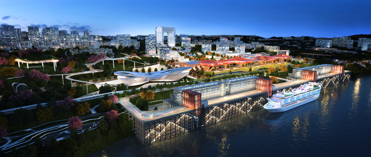 本項目對原寸灘碼頭實施貨運轉客運的功能性改造,建設成為國際郵輪母港碼頭,并全面提升岸線、碼頭景觀品質。