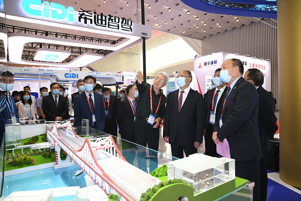 展會期間,中國工程院副院長、院士何華武,中國工程院院士李術(shù)才,全國人大常委會委員、中國公路學(xué)會理事長翁孟勇、副理事長兼秘書長劉文杰等專程到招商交科展廳參觀,了解招商交科科技創(chuàng)新成果情況。招商交科黨委書記、董事長王福敏向參觀嘉賓作介紹。