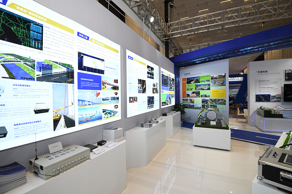 招商交科展廳由公司簡介、創(chuàng)新平臺、業(yè)務(wù)格局、產(chǎn)業(yè)公司、交通科技、智慧交通、生態(tài)環(huán)保及精品工程8大版塊組成,通過展墻、視頻、模型、實物等展覽手段,集中展示了招商交科產(chǎn)業(yè)全貌及“十三五”期間各業(yè)務(wù)板塊的科技創(chuàng)新成果,多角度展現(xiàn)招商交科綜合實力和良好形象。